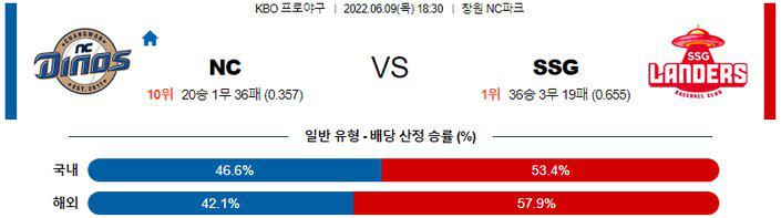 6월2일 퓨처스리그에서 NC 2군을 상대로 9이닝 5피안타 1볼넷 10K, 무실점 완봉승을 기록하고 1군에 올라온 김건우 투수이지만 NC 1군 타자들을 상대로는 고전이 예상된다. 또한, 전일 경기 2-2 무승부의 결과에서 손해를 본 느낌을 받아야 했던 팀은 SSG 였다. 오버 가능성을 1순위 픽으로 추천 하며 NC 승리 가능성도 추천 한다.