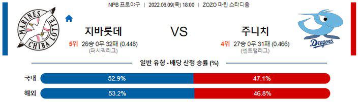 【NPB】 6월 9일 지바롯데 vs 주니치