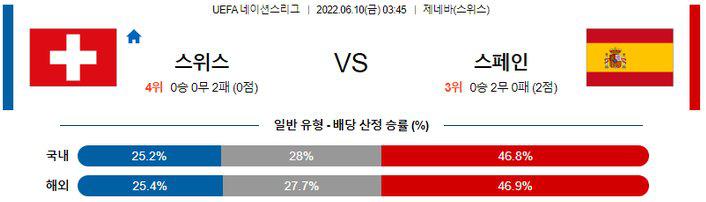 【UEFA네이션스】 6월 10일 스위스 vs 스페인
