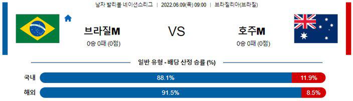 누굴 얼마나 빼느냐가 문제지 명단 상 브라질이 지기가 힘들 정도의 멤버다. 네이션스리그와 도쿄 올림픽 주축들이 거의 다 포함된 상태라 호주가 이기기 정말 힘들 멤버라 할 수 있다. 전력 차가 확연해 브라질의 승리는 물론 셧아웃 승리가 쉽게 나올 것으로 보여 -2.5세트 핸디캡 승리도 같이 보자. 문제는 언오버인데, 132.5점은 3세트 득점 치고는 좀 많이 낮은 편. 남자배구라는 점까지 감안하면 생각보다 호주쪽에서 득점이 더 날 수 있고, 브라질이 멤버들을 더 뺄 수도 있다. 오버부터 보는 것이 좋겠다.
