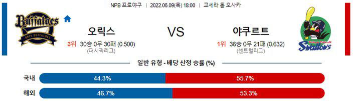 【NPB】 6월 9일 오릭스 vs 야쿠르트
