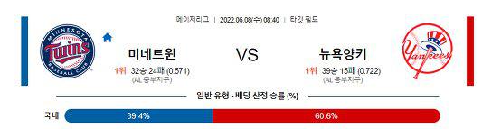 【MLB】 6월8일 미네소타 vs 뉴욕양키스