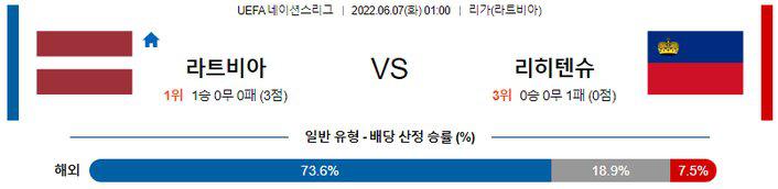 【UEFA네이션스리그】 6월 7일 라트비아 vs 리히텐슈타인