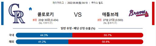 [MLB] 6월 6일 콜로라도 : 애틀랜타
