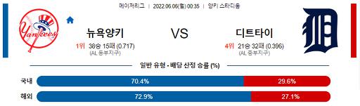 [MLB] 6월 6일 뉴욕 양키스 : 디트로이트