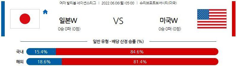 도미니카공화국 상대로 한 세트를 내준 일본이 미국을 어떻게 버틸 수 있을지가 의문. 코가 사리나가 있긴 해도 미국 상대로는 매우 버거워 보인다. 더구나 탐슨이나 프란티, 윌하이트 등이 그대로 뛴다면 전력 차는 더 클 전망이며, 일본이 높이에서 밀린다는 점도 문제다. 미국의 승리는 물론 -2.5세트 핸디캡 승리까지 가져갈 듯하며, 172.5점이면 이건 4세트를 가야 넘는 점수다. 3세트 내에 끝나기에 언더를 봐야 한다.