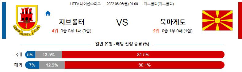 【UEFA네이션스리그】 6월6일 지브롤터 vs 북마케도니아