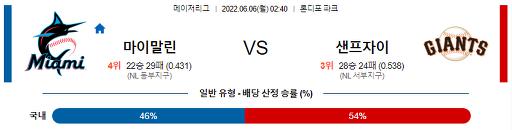 [MLB] 6월 6일 마이애미 : 샌프란시스코