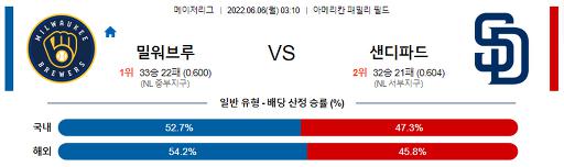 [MLB] 6월 6일 밀워키 : 샌디에이고
