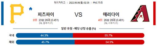 [MLB] 6월 6일 피츠버그 : 애리조나
