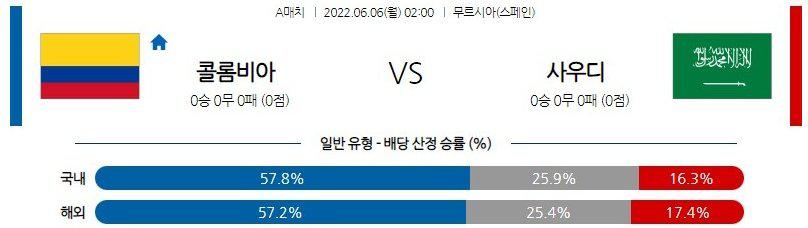 열람중 【A매치】 6월 6일 콜롬비아 vs 사우디 아라비아 2022.06.05 266