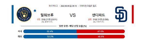 【MLB】 6월05일 밀워키 vs 샌디에고