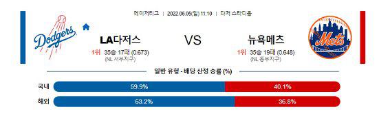 【MLB】 6월05일 LA다저스 vs 뉴욕메츠