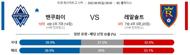 【MLS】 6월5일 밴쿠버 화이트캡스 FC vs 레알 솔트레이크