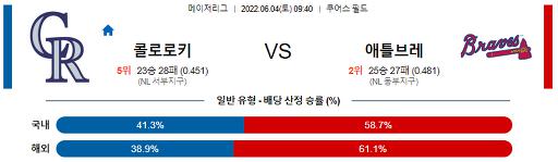 【MLB】 6월 4일 콜로라도 : 애틀랜타