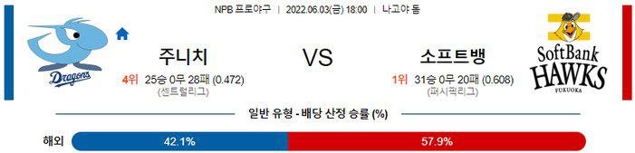 【NPB】 6월 3일 주니치 vs 소프트뱅크
