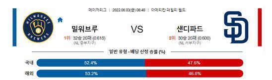【MLB】 6월03일 밀워키 vs 샌디에고