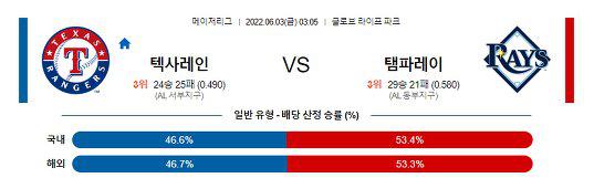 【MLB】 6월03일 텍사스 vs 탬파베이