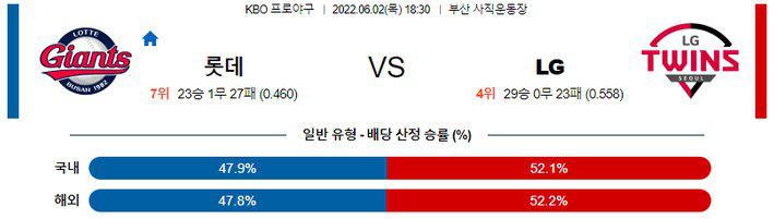 커리어 하이 시즌을 만들어 나가고 있던 박세웅 투수가 최근에 3연패에 빠졌지만 2경기는 원정에서 경기였고 직전경기는 QS를 기록하고 당한 패배 였다. 홈경기 등판에 나서는 박세웅 투수가 선발 싸움에서 밀리지 않는 경기가 된다. 롯데 승리 가능성을 추천 한다.