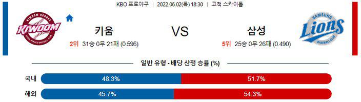 【KBO】 6월 2일 키움 vs 삼성