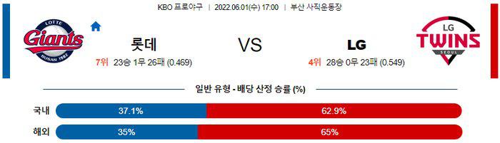 전일 경기에서는 롯데가 7-5 승리를 기록하며 시리즈 기선제압에 성공했다. 6연패에서 벗어나는 승리가 나왔으며 시즌 23승26패 성적. 10안타(1홈헌)를 기록하는 가운데 이인복 투수가 6이닝 2실점 승리투로 위기에 빠진 팀을 구해낸 경기. 반면, LG는 2연패 흐름 속에 시즌 28승23패 성적. 11안타를 기록한 타선의 제 몫을 해냈지만 선발 임준형 투수가 3이닝 7실점으로 무너진 것을 극복하지 못한 경기.