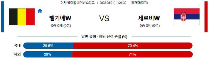 앙카라(터키) 중립구장에서 펼쳐지는 경기다. 리시브 라인이 강한 세르비아를 상대로 벨기에의 강한 서브 구사가 득 보다는 실이 많을 것으로 예상되는 경기다. 벨기에가 1개 세트는 빼앗을수 있겠지만 객관적인 전력의 차이를 극보하며 승점을 챙기기는 힘들 것이다. 세르비아 승리 가능성을 추천 한다.
