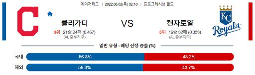 [MLB] 6월 2일 클리블랜드 : 캔자스시티