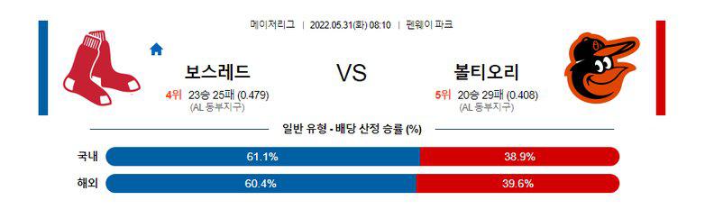 【MLB】 5월31일 보스턴 vs 볼티모어
