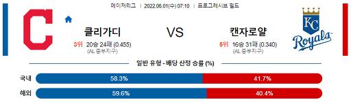 【MLB】 6월 1일 클리블랜드 : 캔자스시티