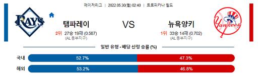 【MLB】 5월 30일 탬파베이 : 뉴욕 양키스