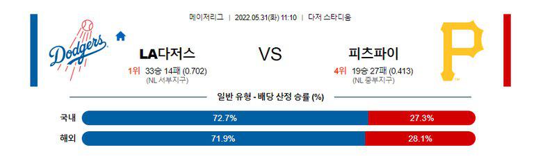 열람중 【MLB】 5월31일 LA다저스 vs 피츠버그 2022.05.30 289