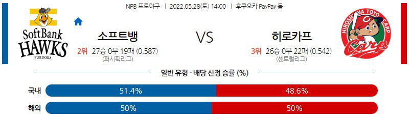 【NPB】 5월 28일 소프트뱅크 vs 히로시마