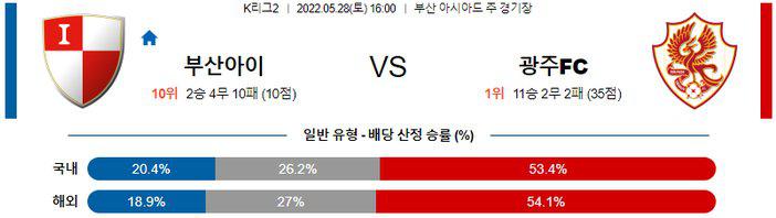 【K리그2】 5월 28일 부산 아이파크 vs 광주 FC