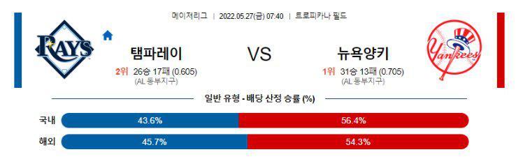 【MLB】 5월27일 탬파베이 vs 뉴욕양키스