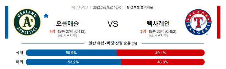 【MLB】 5월27일 오클랜드 vs 텍사스