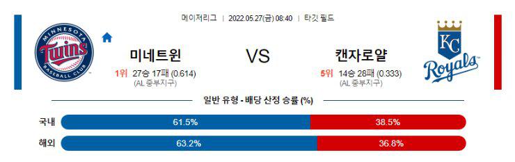 【MLB】 5월27일 미네소타 vs 캔자스시티