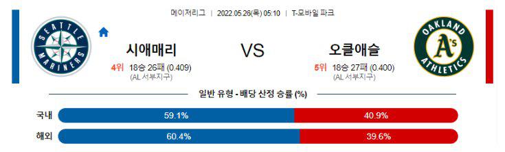 【MLB】 5월26일 시애틀 vs 오클랜드