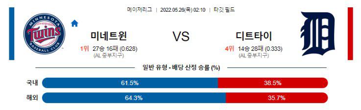 【MLB】 5월26일 미네소타 vs 디트로이트