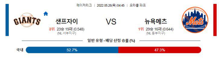 【MLB】 5월26일 샌프란시스코 vs 뉴욕메츠