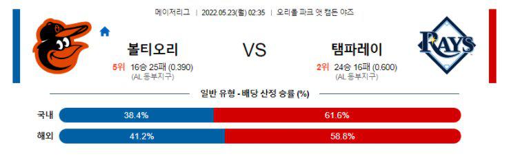 【MLB】 5월23일 볼티모어 vs 탬파베이