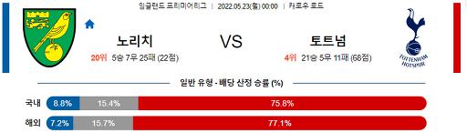 언급하겠지만, 노리치는 조기 강등이 확정된 팀으로 동기부여 차원에서 매우 떨어지는 모습을 보이고 있다.반면 토트넘은 챔피언스리그 진출에 대한 가능성이 굉장히 올라온 상황. 동기부여가 매우 충만하다. 객관적인 전력과 상대 전적 주소모두 토트넘이 우위에 있으며, '핵심 2선' 손흥민을 비롯한 공격진의 컨디션도 매우 좋기 때문에 토트넘의 다득점 승리가 예상된다. 또한 노리치의 핸디캡 패(H+2.0)와 오버 ▲(3.5 기준)도 가능성이 있겠다.