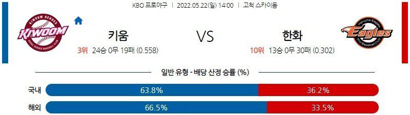 퓨처스리그를 다녀온 이후 복귀전과 직전겨익에서 투구 밸런스가 회복 된 모습을 보여준 최원태 투수이며 키움의 팀 리듬이 우위에 있는 타이밍 이다. 반면, 한화의 이민우 투수는 올시즌 홈에서 2경기 1승, 1.29 기록으로 좋은 모습을 보였지만 원정에서는 제구가 흔들렸던 상황. 키움 승리 가능성을 추천 한다.