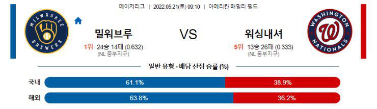 【MLB】 5월21일 밀워키 vs 워싱턴