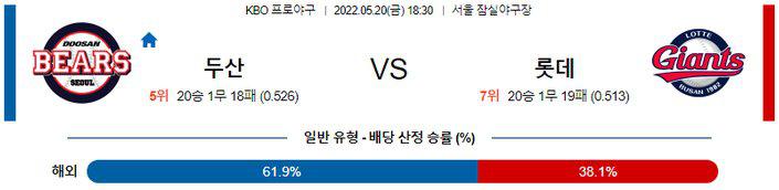 두산은 목요일 홈에서 SSG 상대로 3-9 패배를 기록하며 시리즈 1무2패를 기록했다. 4연패 흐름 속에 시즌 20승18패 성적. 이틀 연속 연장전 승부에서 헛심만 쓴 휴유증에서 자유로울수 없었고 선발 싸움에서 밀리자 추격조 불펜을 가동하며 후일을 도모하는 수순을 밟았던 경기. 반면, 롯데는 목요일 홈에서 기아 상대로 2-4 패배를 기록하며 시리즈 3패를 기록했다. 4연패 흐름 속에 시즌 21승18패 성적. 이인복 투수가 6이닝 3실점 QS를 기록했지만 타선의 도움을 받지 못하며 패배를 기록했고 5안타(1홈런), 7개 잔루를 기록한 경기.