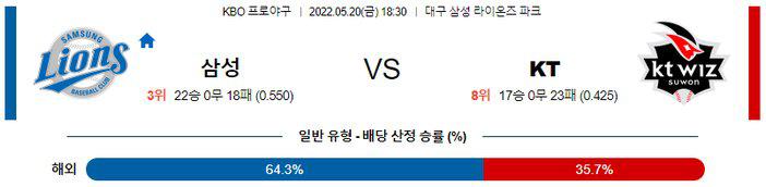 열람중 ​【KBO】 5월 20일 삼성 vs KT 2022.05.20 285