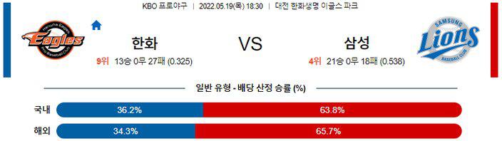 원태인 투수의 투구 리듬이 더 좋은 모습을 보여주고 있으며 전일 경기 대역전승을 기록한 결과도 목요일 경기에서 삼성에게 긍정적인 요소로 작용할 것이다. 삼성 승리 가능성을 추천 한다.