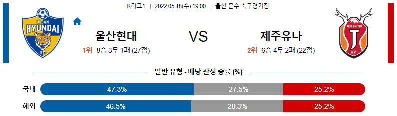 【K리그1】 5월18일 울산 현대 축구단 vs 제주 유나이티드● 울산 (리그 1위 / 승패패승무)