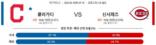 5월 19일 07:10 MLB 클리블랜드 : 신시내티