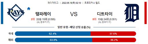 5월 19일 02:10 MLB 탬파베이 : 디트로이트