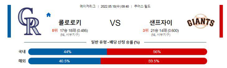 【MLB】 5월18일 콜로라도 vs 샌프란시스코